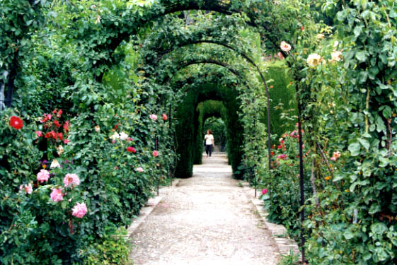 ヘネラリフェの中庭 王の夏の別荘という。夾竹桃が咲き乱れ、噴水が涼風を誘う。 かってはここをどんな人々が行き来していたのだろうか |