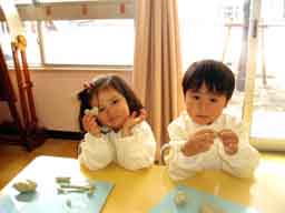 - 本日は、我が子が給食の準備のところから拝見させて頂けるということで、怖いもの見たさと言うか“見たいような見たくないような”気持ちで行ったのですがとても静かに準備をし、静かに待っている姿を見て家との違いにびっくりしてしまいました。やはり3歳とはいえ、幼稚に入るとこんなに出来るようになるんだと感謝の気持ちでいっぱいです。(Cちゃん母)